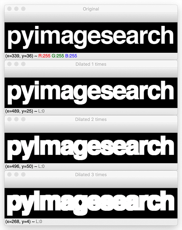 In this tutorial, you will learn about applying morphological operations with OpenCV. The morphological operations we’ll be covering include: Erosion Dilation Opening Closing Morphological gradient Black hat Top hat (also called “White hat”) These im