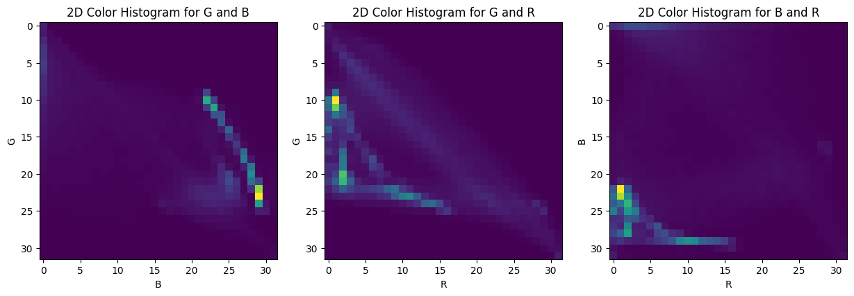 그래프에서 밝은 부분은 해당 색상 조합을 가진 픽셀이 이미지에 많다는 것을 의미